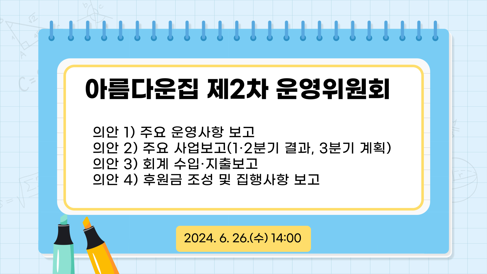 2024년 제2차 아름다운집 운영위원회 정기회의 개최 안내