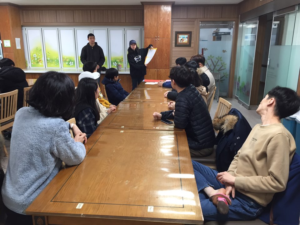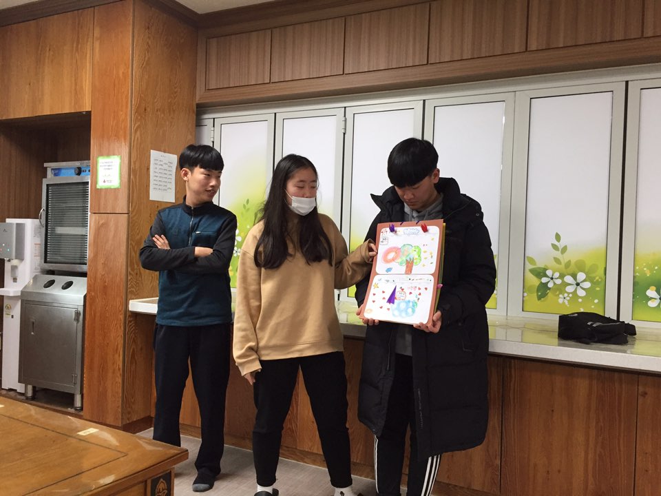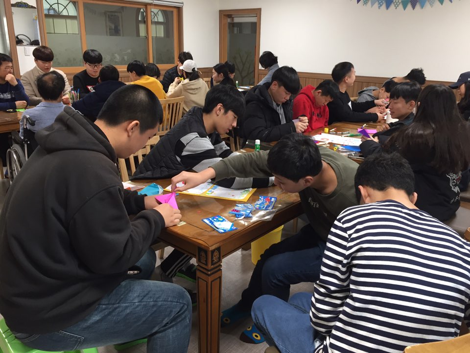 1월의 둘째주 토요일 입니다. 오늘은 예산제일감리교회 중고등부에서 오전에 봉사활동을 왔습니다. 19년을 맞이하여 달력만들기 활동을 했는데, 이용인분들이 자신의 생일도 적고 스티커도 붙이고 종이접기 하여 붙이고 그리는 활동을 통하여 즐거움을 느끼셨습니다. 오후에는 개인봉사자(강동연)가 노력봉사(원내청소) 활동을 진행했습니다. 모두 감사합니다^^
