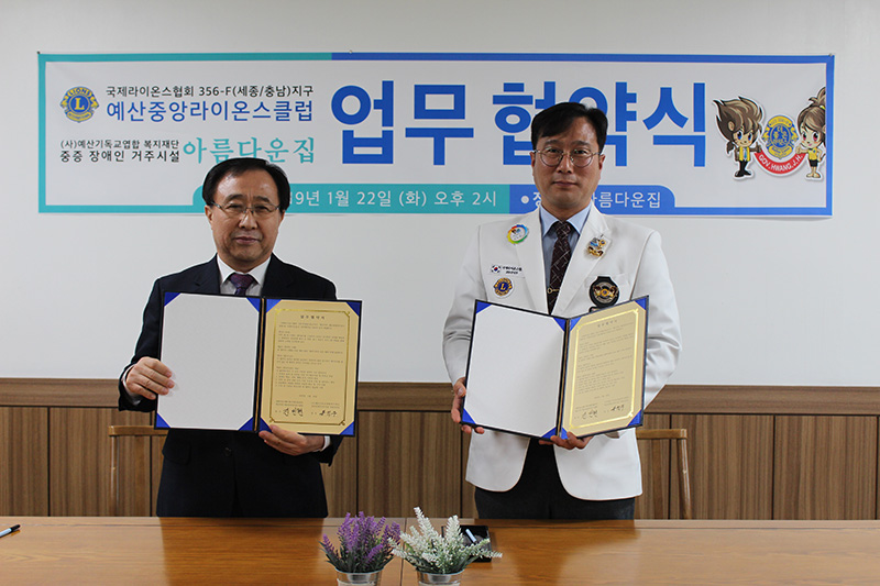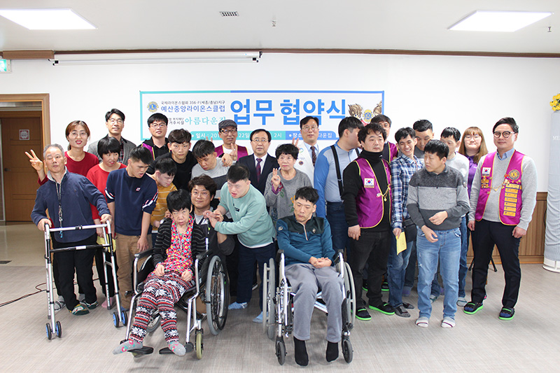 오늘은 국제라이온스협회 356-F(세종/충남)지구 '예산중앙라이온스클럽'과 아름다운집이 업무협약식을 가졌습니다. 클럽 회원분들과 아름다운집 이용인 및 직원이 함께 참여하여 자리가 더욱 의미있었습니다. ^^ 앞으로 잘 부탁드립니다!