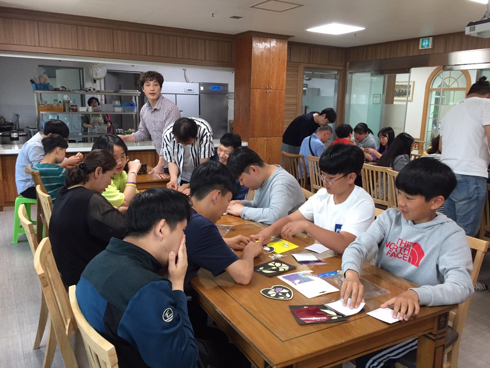 오후에는 예산중앙감리교회 중고등부 봉사자들과 카네이션 스티커 붙이기 및