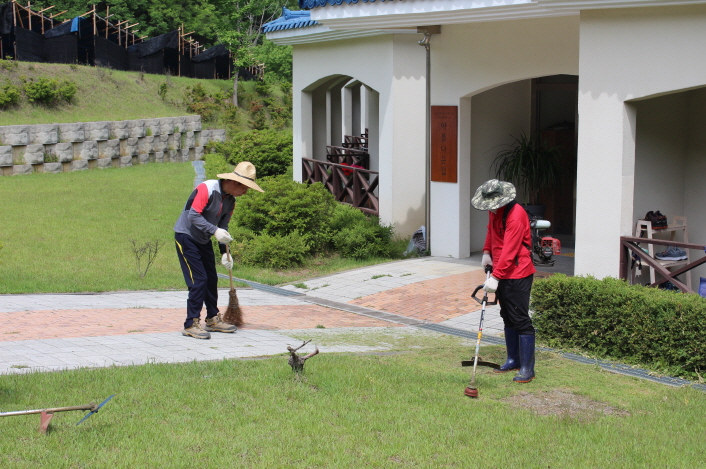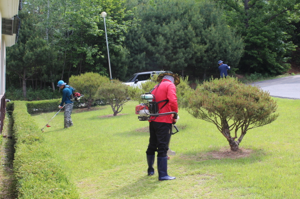 시설 주변에 자라나는 잡초들을 말끔하게 정돈해 주셔서