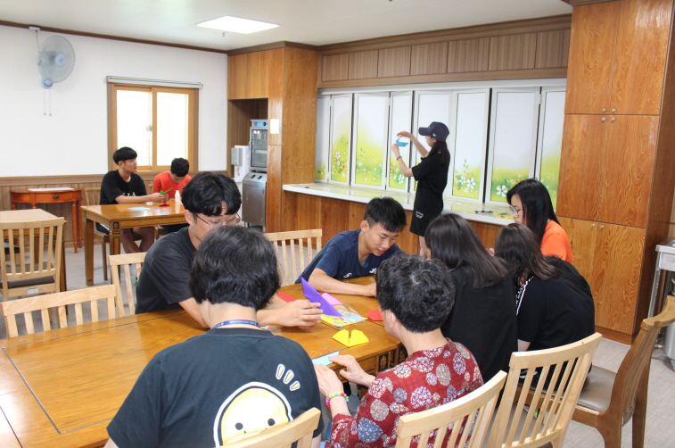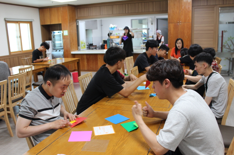 6월의 둘째주 토요일, 제일감리교회 중고등부 학생들과 중앙감리교회 중고등부 학생들과 개인봉사자(강*연, 임*룡, 이*은) 학생들이아름다운집에 오는 날 입니다.오전에는 종이접기 활동과 시원한 물총놀이를 오후에는 페이퍼 크래프트와 학습활동을 했습니다. 오늘도 즐거운 활동을 함께 할 수 있어 감사합니다