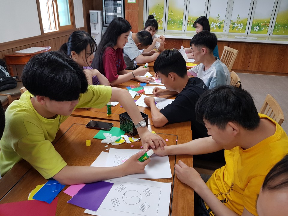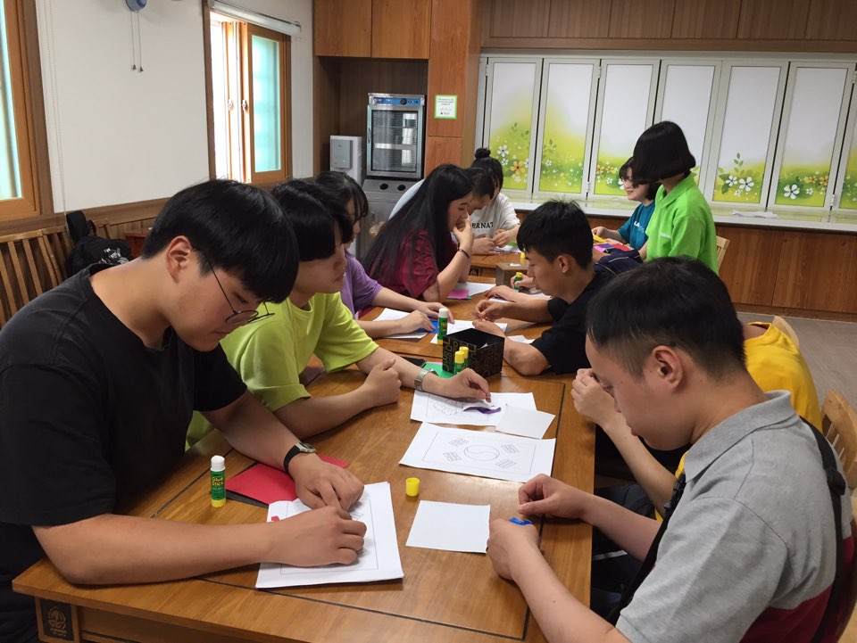 오후에는 삽교고등학교 3-1 학생들과 집중력 발휘하여 미술활동(모자이크)을 진행했습니다.