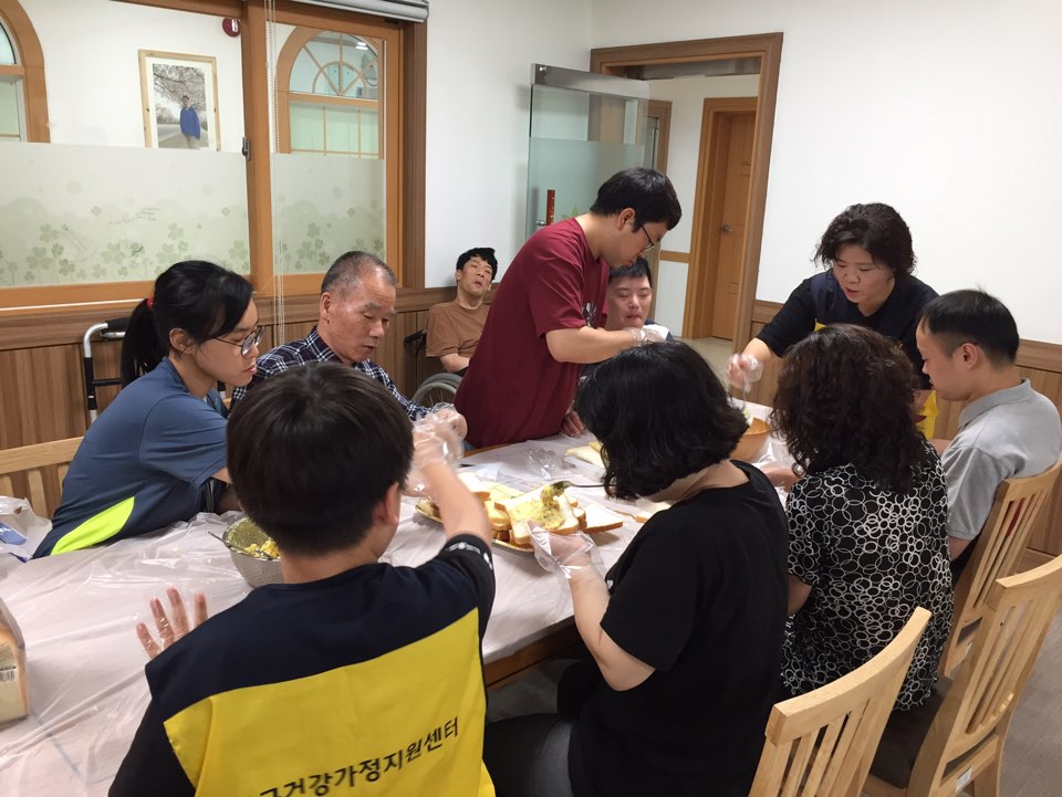 오늘은 6월 셋째주 토요일 입니다오전에는 모두가족봉사단이 신나는 요리활동(샌드위치 만들기)을 함께 해주셨고오후에는 삽교고등학교 3-1 학생들과 집중력 발휘하여 미술활동(모자이크)을 진행했습니다. 감사합니다 :)
