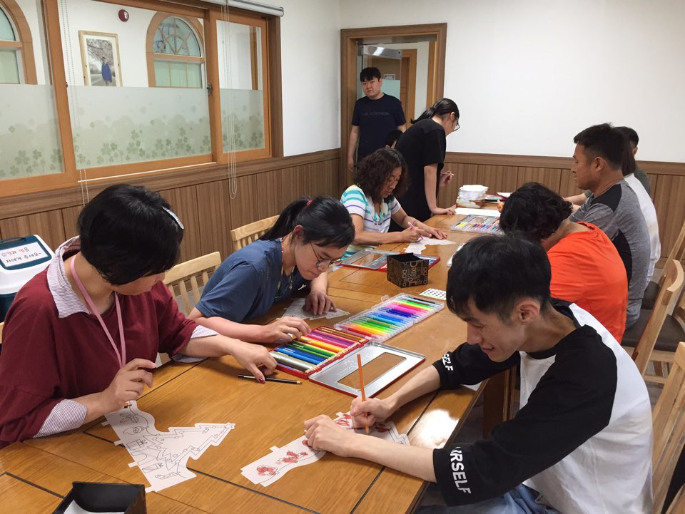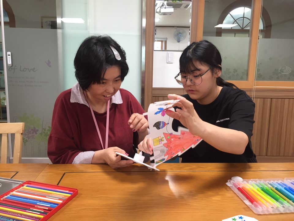 오늘은 예화여고 RCY봉사단이 봉사 오는 날 입니다! 미술활동(전등 갓 만들기)을 진행했는데 영화'8월의 크리스마스'가 생각나는크리스마스 분위기가 물씬 느껴지는 그림을 자신의 취향에 맞게알록달록 색칠해보며 좋은 경험이 되었습니다. 감사합니다;)
