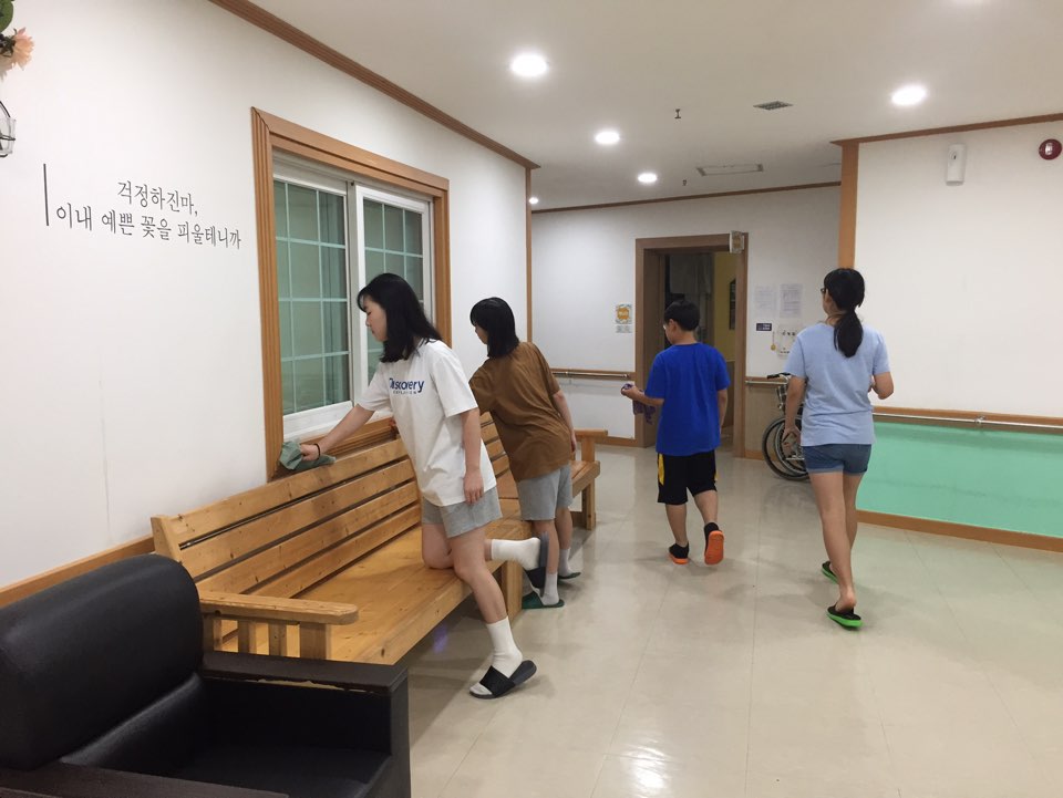 오늘은 개인봉사자(김귀희 외 2명)와 학습 및 스포츠활동을 진행했으며 민들레가족봉사단은 원내 청소를 하고 새가족이 있어 함께 인사하는 자리를 마련했으며개인봉사자(이두희 외 3명)는 학습 및 운동지원을개인봉사자(이진희 외 2명)는 여성이용인을 대상으로 학습 및 여가활동을 진행했습니다. 7월의 마지막 토요일에 즐거운 활동 모두 감사드립니다^^