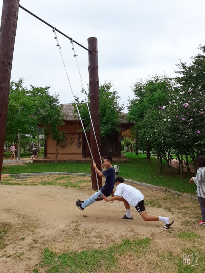 대흥 의좋은형제 공원에 가서 장구경도 하고 그네도 서로 밀어주며