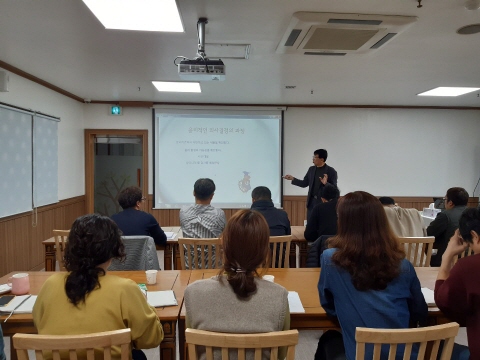 * 때: 2019. 11. 6.(수), 09:30~11:30*주제: 사회복지조직의 도덕적 민감성과 윤리실천 날개 달기*강사: 김일용 관장님(즐거운 사회복지궁리센터)*교육을 통해 우리 시설의 윤리적 수준을 점검해보고 한층 더 성숙한 곳, 직원이 되기 위해 어떤 노력을 해야하는지를 배우는 유익한 시간이었습니다. 따뜻하면서도 섬세하게 강의해주신 관장님과 휴무임에도 교육에 참여해주신 선생님들 모두 모두 감사드립니다.