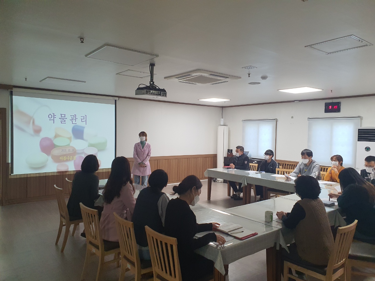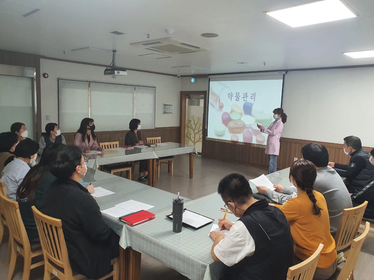 아름다운집 이용인분들의 건강생활에 중요한 부분을 차지하는안전한 의약품 사용, 약물 오남용 예방에 관한 약물관리 교육을아름다운집 전체 직원들을 대상으로 실시함으로써이용인 건강 케어에 관한 전문성을 한층 높일 수 있었습니다!