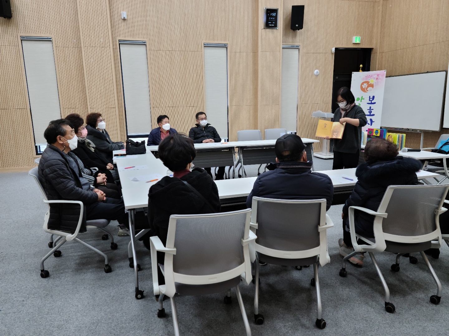 먼저 '발달장애 부모를 위한 그림책 테리피'라는 주제로 교육이 진행되었는데 강사님이 읽어쥐는 동화책을 들으며 장애부모로서 겪는 어려움에 대해서 나누고 소통하는 좋은 시간이 되었습니다. 간담회에서도 21년도를 돌아보고 22년도 핵심사업, 기관운영에 관한 주요 내용을 전달하고 보호자분들의 건의사항을 청취하는 시간을 가졌습니다. 각자 주어진 상황과 생각이 다르지만 아름다운집을 사랑해주시는 마음만큼은 다들 똑같더라고요. 다들 환하게 웃으시면 돌아가는 뒷모습을 보니 앞으로도 자주 이런 자리를 마련해야겠다는 생각이 들었습니다. 그동안 보호자분들께서 주신 관심과 사랑을 이용인들에게 되돌려주도록 노력하겠습니다.