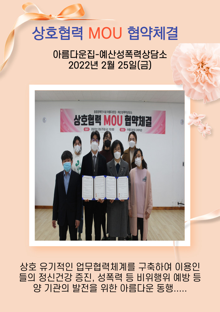 아름다운집 이용인들의 정신건강 증진과 심리상담 지원, 성폭력 등 비위행위 예방교육 등으로 아름다운 동행 시작!!