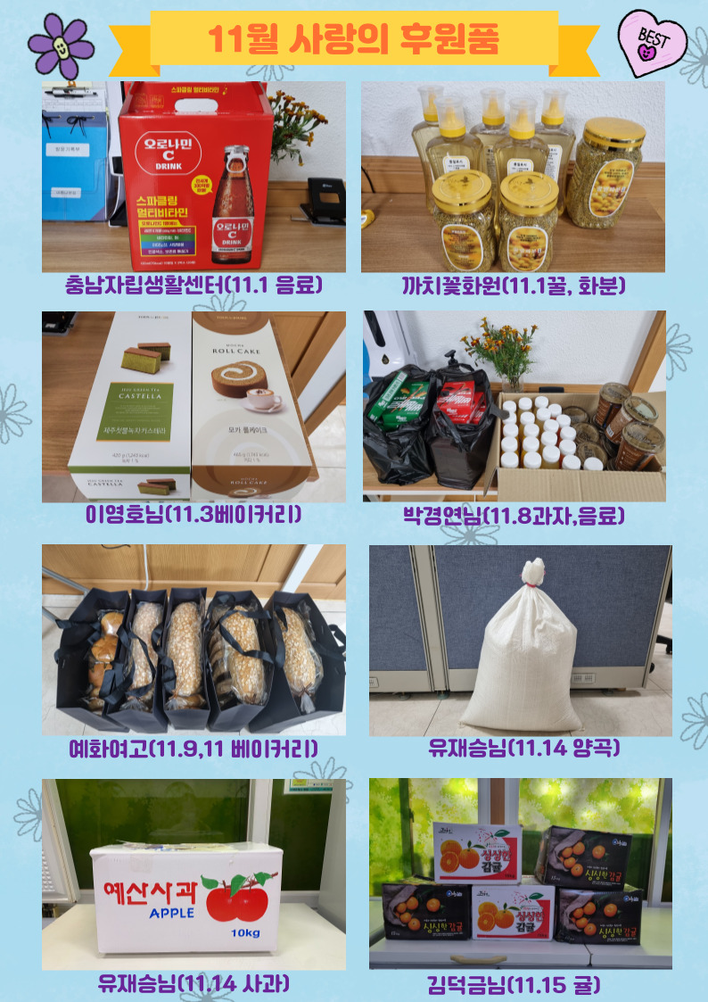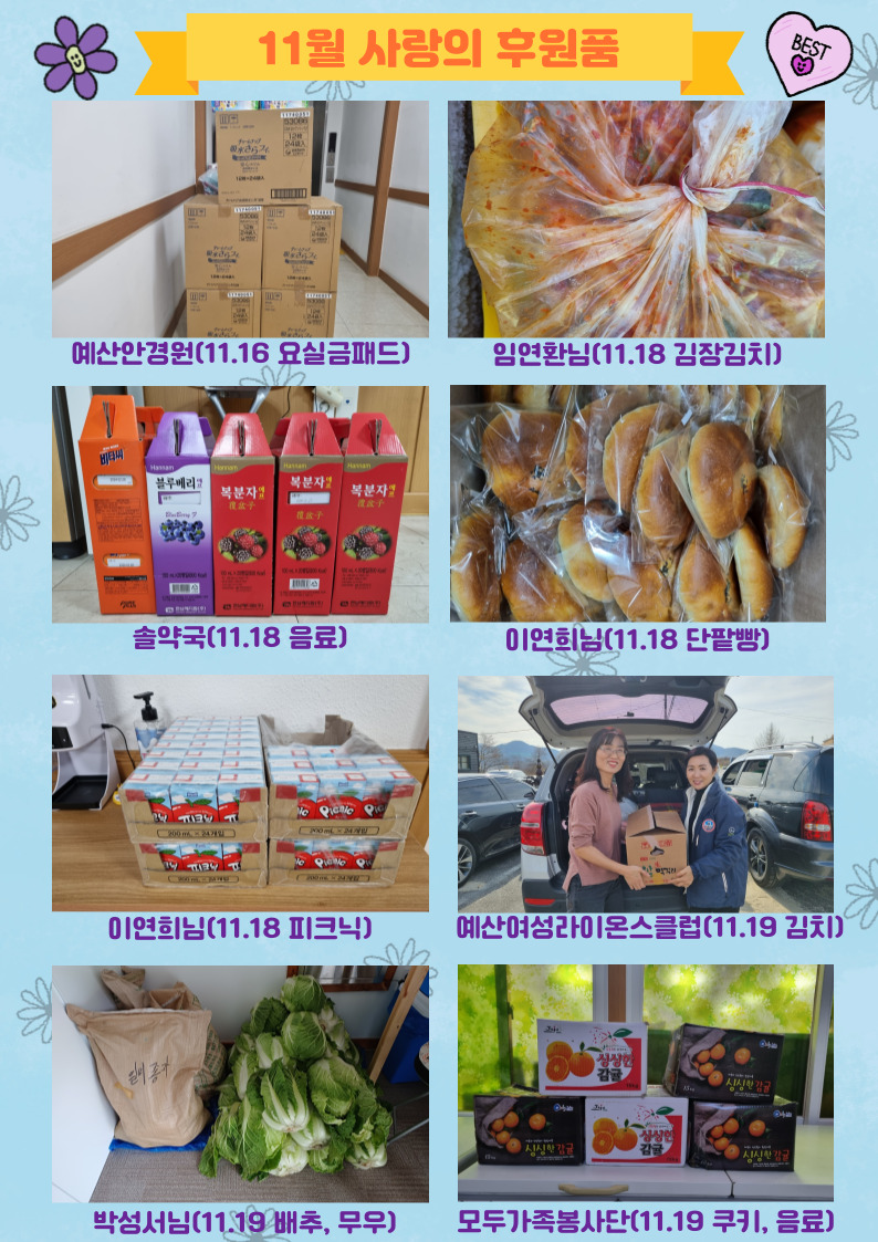 후원물품을 통해 사랑을 실천해 주신 모든 분들께 깊은 감사를 드립니다.^^