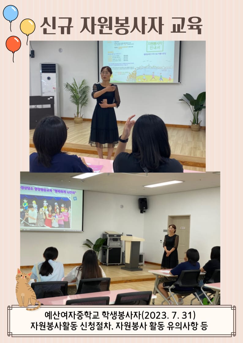 예산여자중학교 2학년! 여름방학을 맞이하여 의미있고 뜻있는 봉사활동을 하고 싶어 찾아온 학생들..